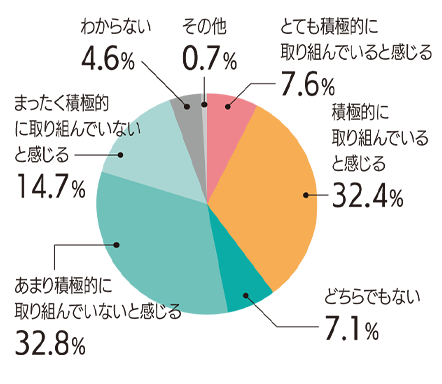 全体の約40%が「DX に積極的に取り組んでいる」と回答。なかでも「金融」、「運輸サービス」といった業種に積極的な企業が多いことがわかった。
