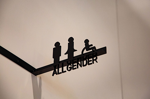 トイレにもこだわっていて、賃貸オフィスだとトイレは変更できませんが、ここでは5箇所あるうちの2箇所を、性的マイノリティの方の意見も取り入れながら、オールジェンダー仕様にしました。
