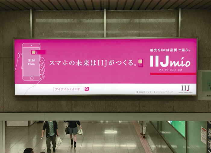 名古屋駅・新幹線ホームに掲げられたIIJmioの看板広告(2017年)