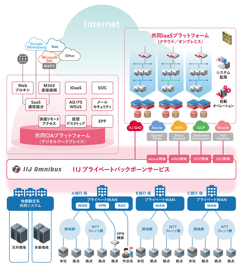 勘定系をシステムの心臓に喩えるなら、共同システムのプライベートバックボーンは生まれ変わる身体の血管として、地銀のシステム全体を支える役割を果たします。加えて、システムの手足や目鼻となるOA環境の改革を共同システムの1サービスとすることで、地銀勘定系共同システムのようなミッションクリティカルな領域においても、IIJの特長が遺憾なく発揮できるものと考えます。