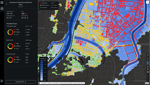 Synspectiveが提供する洪水被害状況把握サービスの画面イメージ