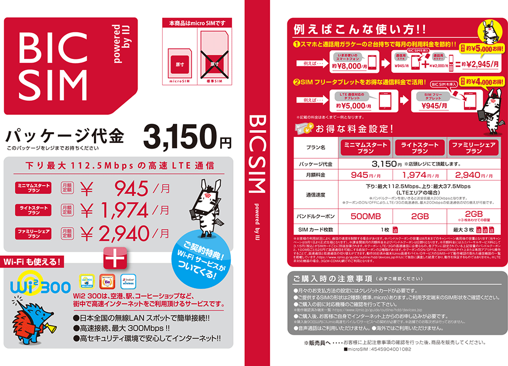 | SIMパッケージ価格(税込) | 3,150円 | ||