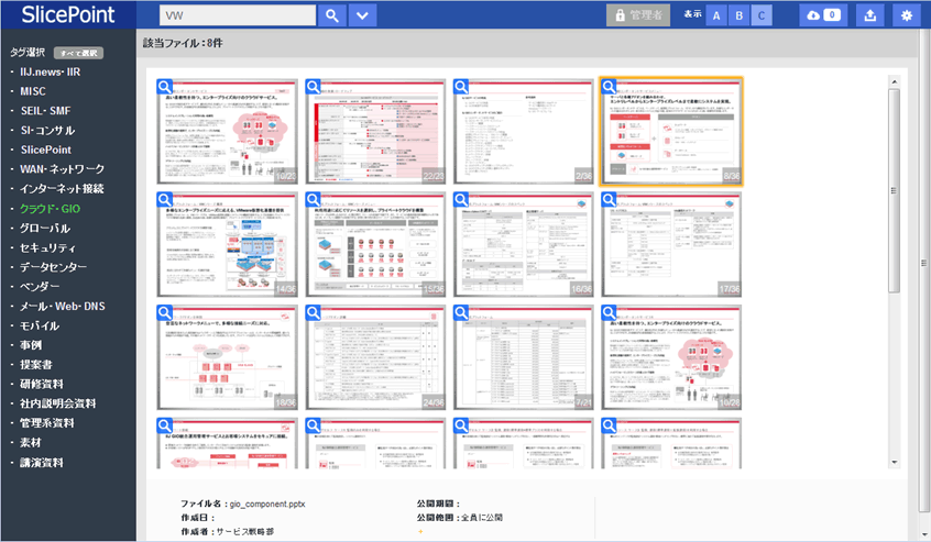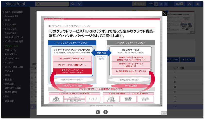 株式会社インターネットイニシアティブ(IIJ、本社:東京都千代田区、代表取締役社長:勝 栄二郎、コード番号:3774 東証第一部)は、PDFやPowerPointなどのドキュメントを全文検索し、オンラインプレビューで確認、ダウンロードできるソフトウェア「SlicePoint(スライス・ポイント)