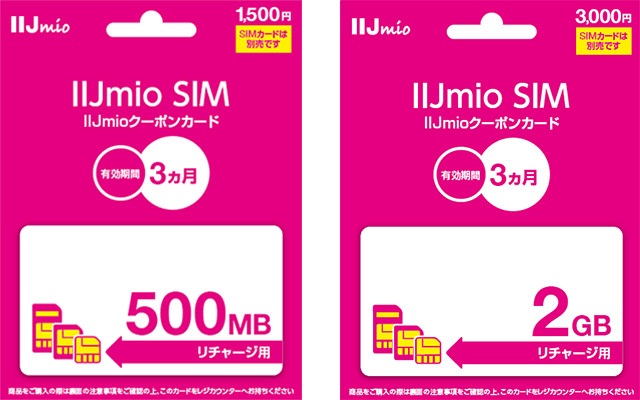 | 名称 | IIJmioクーポンカード1500 | IIJmioクーポンカード3000 |
