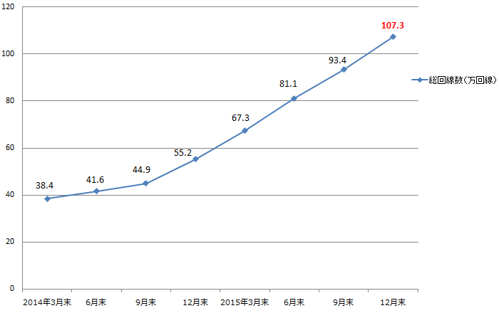 株式会社インターネットイニシアティブ(IIJ、本社:東京都千代田区、代表取締役社長:勝 栄二郎、コード番号:3774 東証第一部)は、MVNO事業として展開しているモバイルサービスの総回線数が、2015年12月末日時点で100万回線を超え、107.3万回線に達したことを発表いたします。