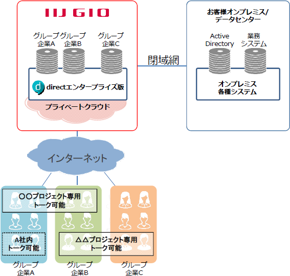 「IIJ GIOサービス」にあるお客様専用のプライベートクラウド環境でdirectをお使いいただくため、より安心かつ安全にご利用いただけます。