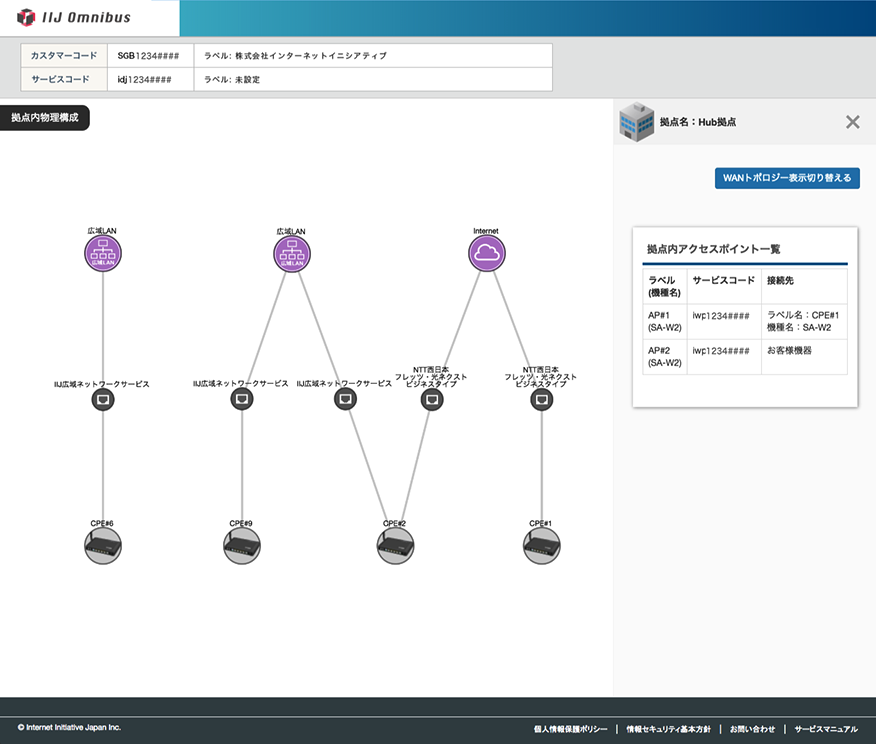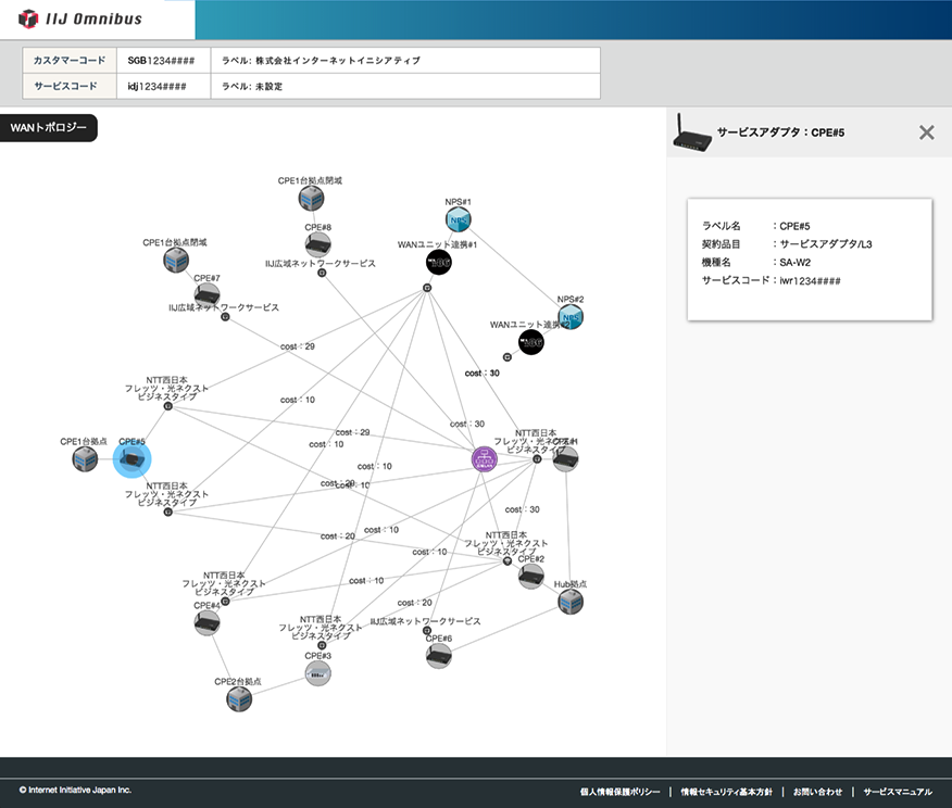 WANのトポロジーや各拠点の設定状況など最新のネットワーク情報をオンラインポータルから確認できます。ネットワークの疎通を確認するPingや情報を参照するShowコマンドなどを実行することもできます。また2018年内には、オンラインポータルより、お客様ご自身で設定変更を行なうことができる機能をご提供する予定です。