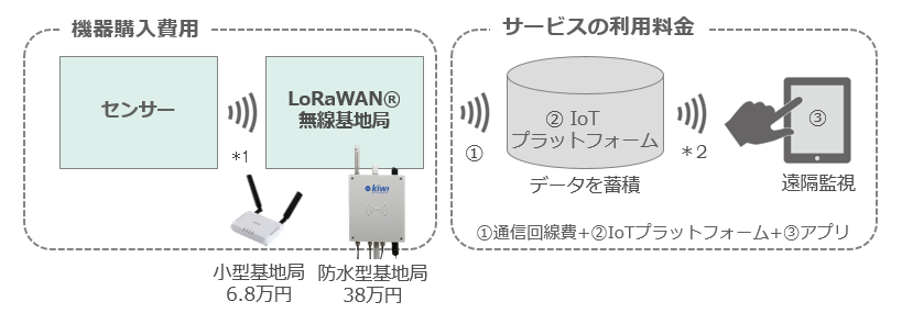 | センサー100台+基地局3台 | 85,000円(税抜) | 850円/年 |