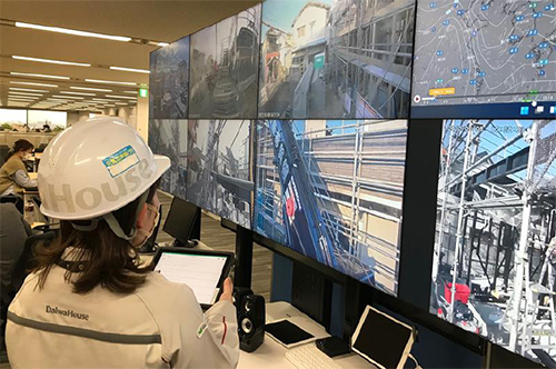 デジコンBOXから収集されたデータは、全国12ヵ所にある、複数の施工現場映像や作業員のデータを一元管理し、モニターを通じて遠隔管理するシステム「スマートコントロールセンター」においても遠隔でモニタリングできます。リモート環境での品質管理や安全管理などを実現し、現場との密なコミュニケーション・作業効率の向上を実現します。