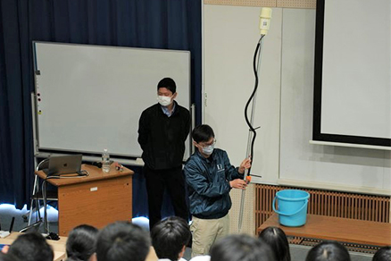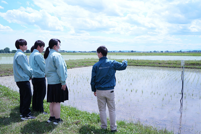 当社は、宮城県登米総合産業高等学校(宮城県登米市、川上剛弘校長)に協力し、同校農業科の1~3年生82名を対象にした出前授業を2回にわたって実施することになり、5月31日に1回目を実施いたしました。初回は、スマート農業の最新動向の解説のほか、実際に水稲栽培を行う水田に水位と水温を測るIoTセンサーを設置してデータを実測し、データの計測・分析方法など、IoTを活用した水田の水位管理について学習しました。2回目は、センサー利用後の意見交換を中心とした学習および講義を7月13日に実施予定です。