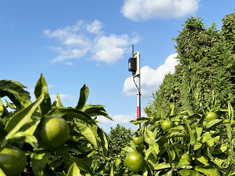 昨年度の実装検証では、温州みかん産地の愛媛県 真穴(まあな)柑橘共同選果部会(真穴共選)において、それまで経験と勘に基づいて行っていた土壌の乾燥状態の判断と灌水(かんすい)オペレーションの最適化を目的として、みかん畑240ha全体をカバーする LoRaWAN®(※2)ネットワークと、120台の土壌水分センサーによるデータ分析基盤を構築し、土壌水分データの可視化を実現しました。