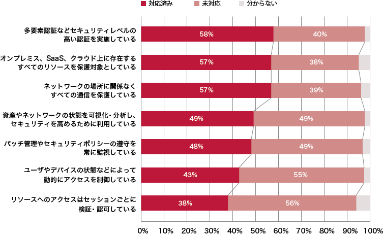 約半数の企業がゼロトラスト対応着手も、動的なアクセス制御やセッション毎の検証・認可が課題