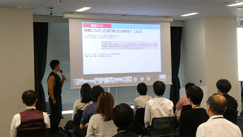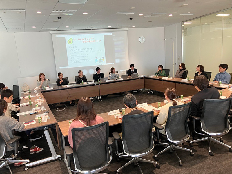 続いては健康的な食事を意識してほしいという思いで企画した「おいしく、健やかに!食生活を見直すランチミーティング」です。忙しい毎日を送っていると日々の食事が偏ってしまいがちに…。今回は管理栄養士監修のお弁当をみんなで食べながら、日々の食事や栄養に関する情報交換を行いました。