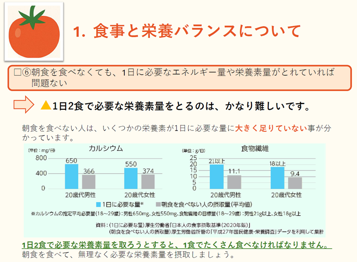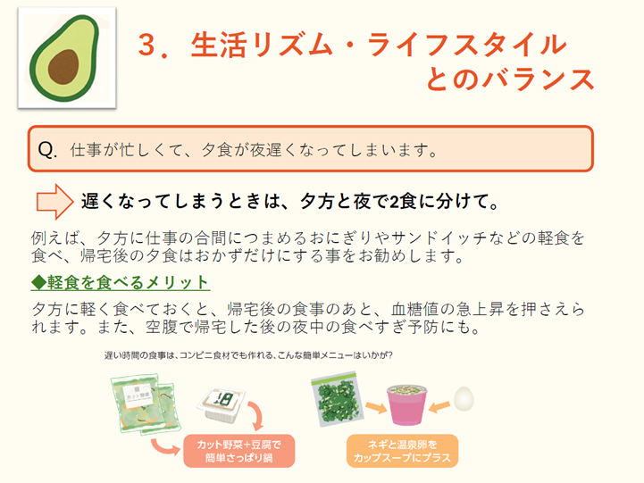 後半は「みんなでシェア!日頃の食生活トーク」と題して、以下のテーマで参加者同士の情報交換を行いました。