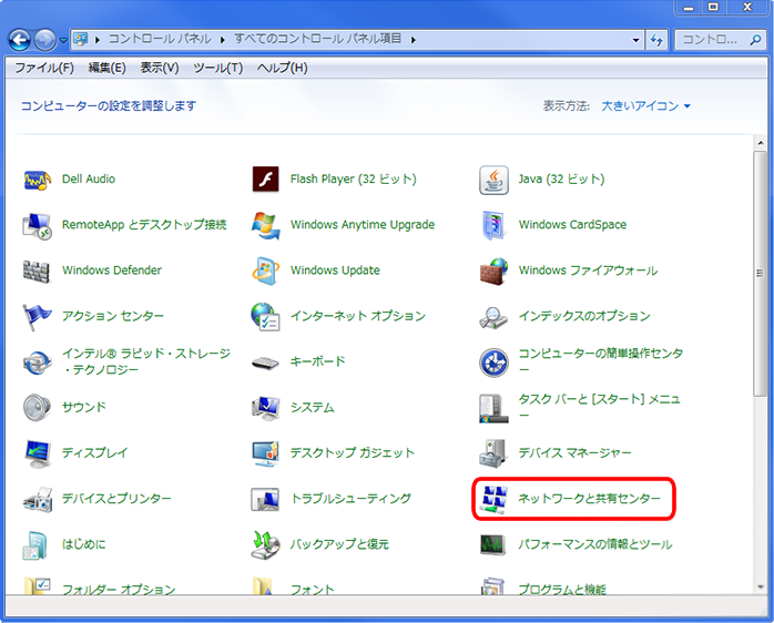 2.コントロールパネルから「ネットワークと共有センター」をダブルクリックしてください。