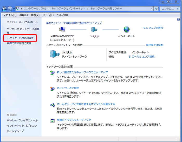 3.ネットワークと旧友センターが開いたら、左のメニューから「アダプターの設定の変更」をクリックしてください。