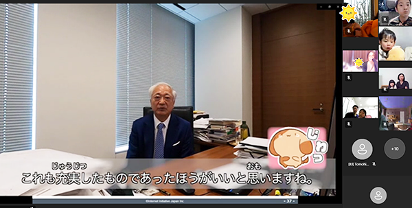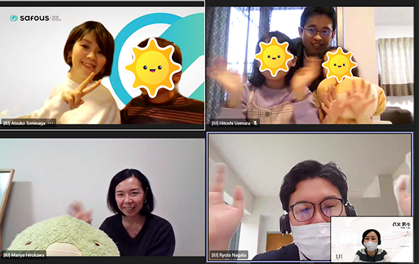 (最初にWeb会議ツールの使い方を練習しました。参加者はリアクションマークを押して、反応を楽しみます。)