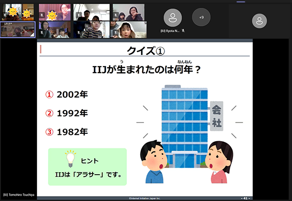 (IIJに関するクイズ。Web会議ツールの「投票」機能を使って、回答します。)