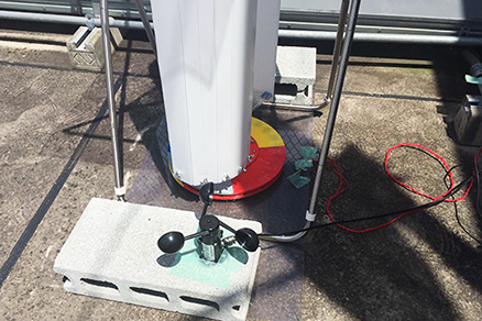 風通しもコンセントもある場所に、風車を設置することができました。 最初、校内のWi-Fiが設置場所まで届かずに苦労しましたが、現在は順調にデータを収集できています。