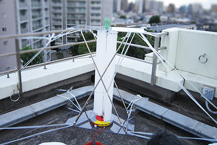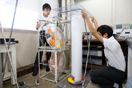 東京理科大学の実験室で製作した風車は、一旦ばらばらにして各学校に持ち帰っています。これを組み立て直して実験場所に設置するのが最初の課題。風通しが良く、ほかの人の迷惑にならない場所を探して、みなさん設置には苦労されているようです。