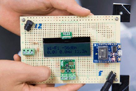 1日目に製作した風力発電機と、2日目に製作したセンサーモジュールを接続して、電力を計測できるか確認します。センサーモジュールに搭載された液晶で確認した後は、パソコンを使ってクラウド上にデータが正しく蓄積されているかどうか、グラフを表示して確認しました。