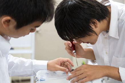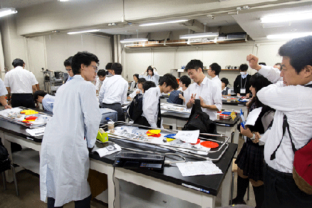 理科大のみなさんから指導を受けながら、参加者チームは3Dプリンタで製作した基盤部分や、プラスチックダンボール素材の羽根を組み立てます。