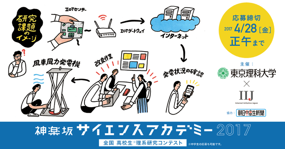 神楽坂サイエンスアカデミーは、2016年から東京理科大学 川村研究室と株式会社インターネットイニシアティブ(IIJ)が共同で開催している「理系人材」育成を目的とした中・高校生向けの長期研究体験企画です。