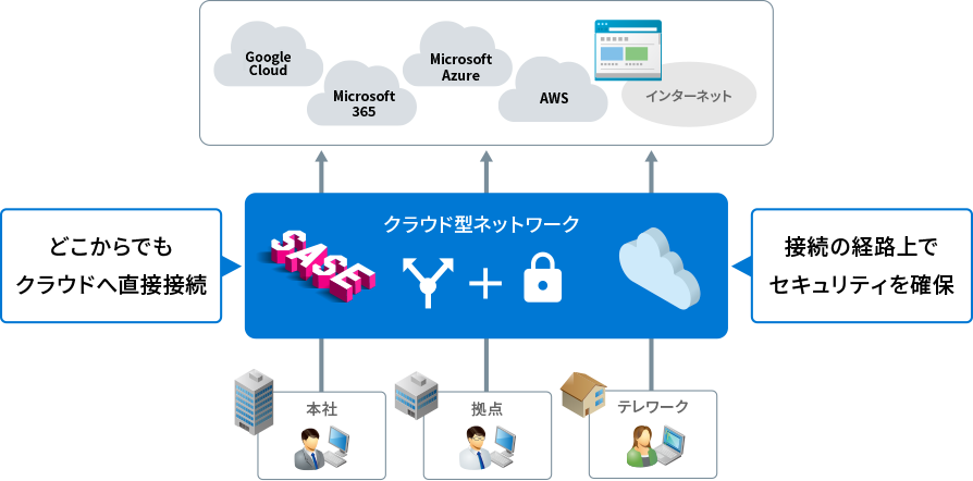 WANを含めたすべての通信はインターネットを経由し、1Gbpsを超える広帯域や閉域回線での接続はできません。セキュリティや安定性に不安が残ります。