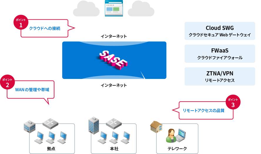 SASEネットワーク内の通信が高速でも、接続する前に遅延が発生しているため、SASEのメリットを活かすことができません。