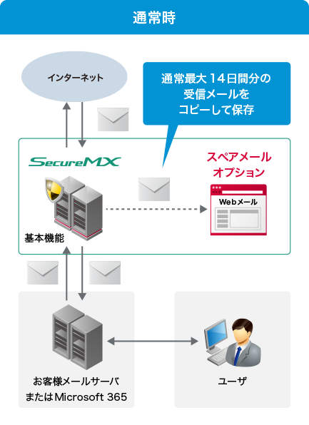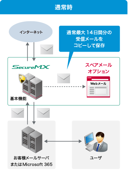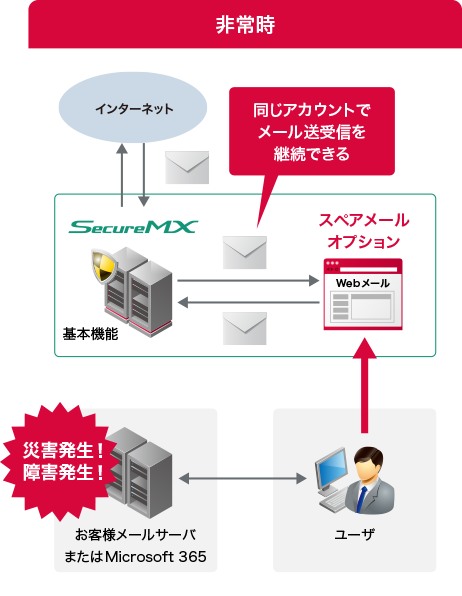 既存メール環境への影響もなく、手軽に障害対策を実現できます。