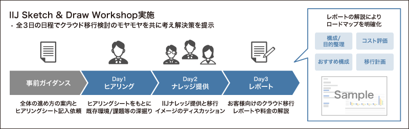 まず、ワークショップの開催前にヒアリングシートに記入する必要がありました。そして、IIJ本社で開催された3日間のワークショップでは、エンジニアの方が親身に対応してくれました。