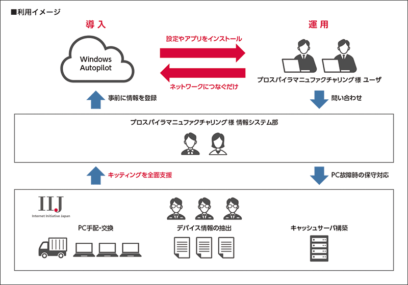 台数が多く、短期間でキッティングしなければならなかったので、Autopilotを使って良かったと思います。マスタークローン方式では期日に間に合わなかったでしょう。IIJには、分割配送や、PCのグループごとの設定のカスタマイズやチューニングなど、細かいところまで対応してもらえてとても助かりました。