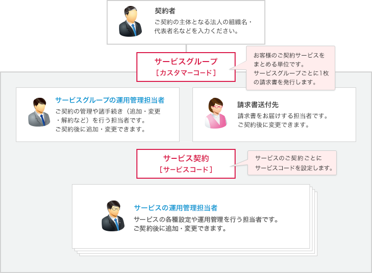 ※一部のメニューは、サービスグループの管理者のみご利用いただけます。