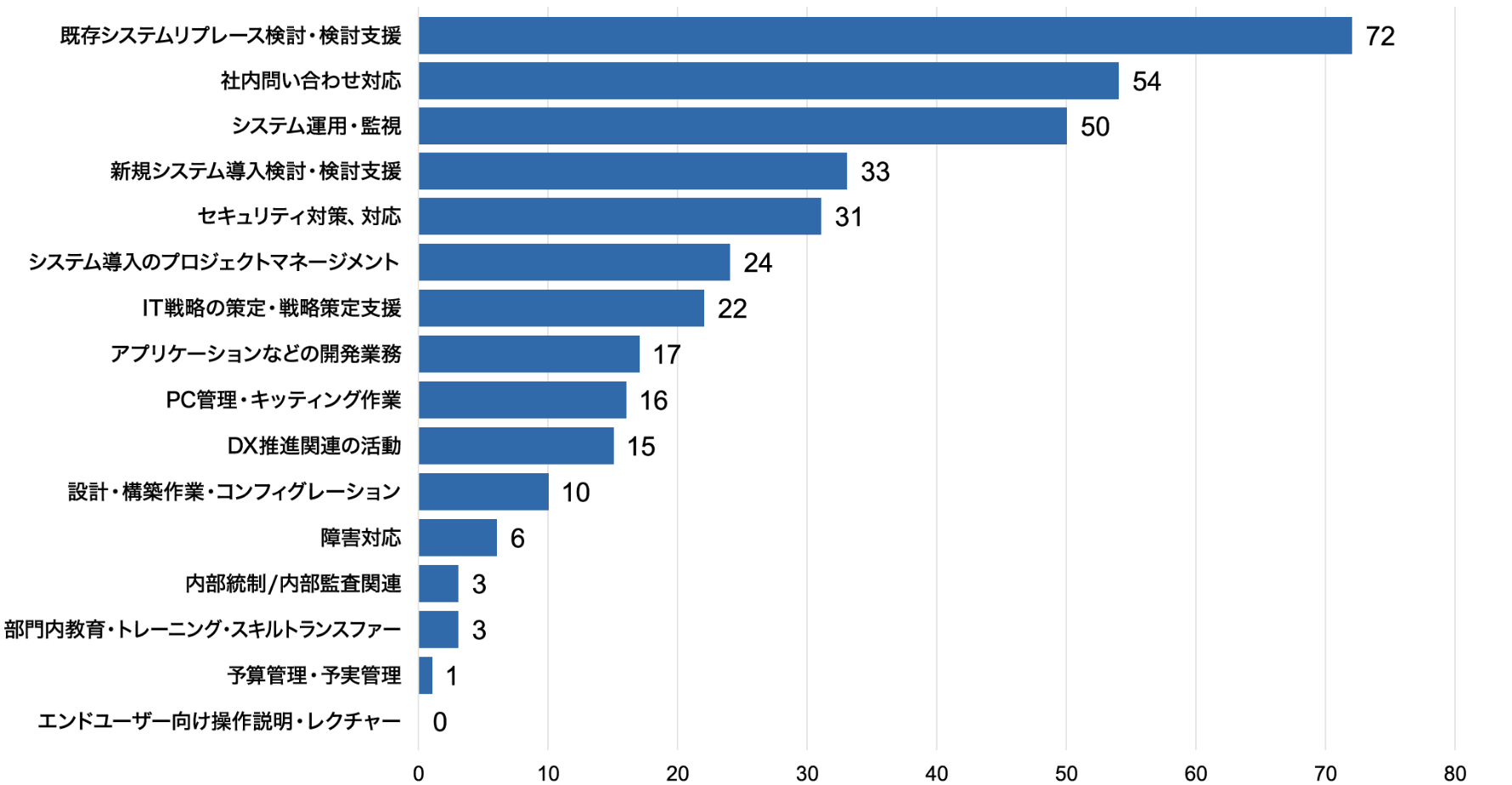 時間を費やしている業務は既存システムリプレース関連が1位。役職別のランキングも明らかに。